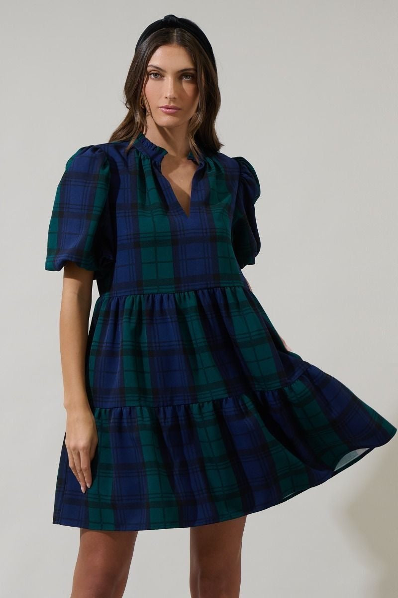Indulge in the perfect blend of comfort and style with our Hudson Plaid Babydoll Mini Dress. The v-neckline and bubble sleeves add a flirty style to this plaid dress. Great length and fully lined.