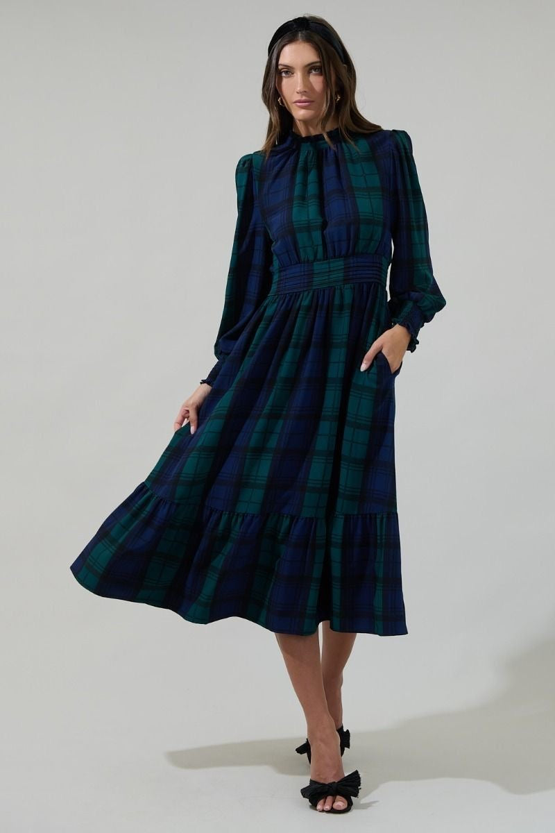 Indulge in the perfect blend of comfort and style with our Hudson Plaid Smocked MISI Dress. The smocked waist creates a beautiful relaxed silhouette that’s so easy to wear. Long sleeves and nice long length. Fully lined.