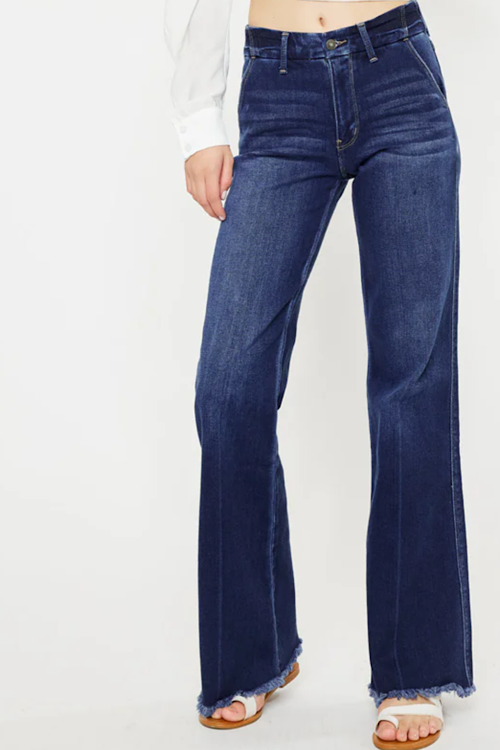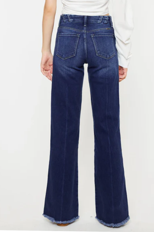 Get ready to elevate your denim game with our High Rise Flare Jeans. The trendsetting dark wash, faded details, and frayed hem give you a chic and stylish look. Made with comfort-stretch denim, these jeans hug your curves while allowing you to move freely. With a single-button front and zip-fly closure, these jeans sit above the natural waistline before flaring out for a flattering fit. Upgrade your wardrobe now.